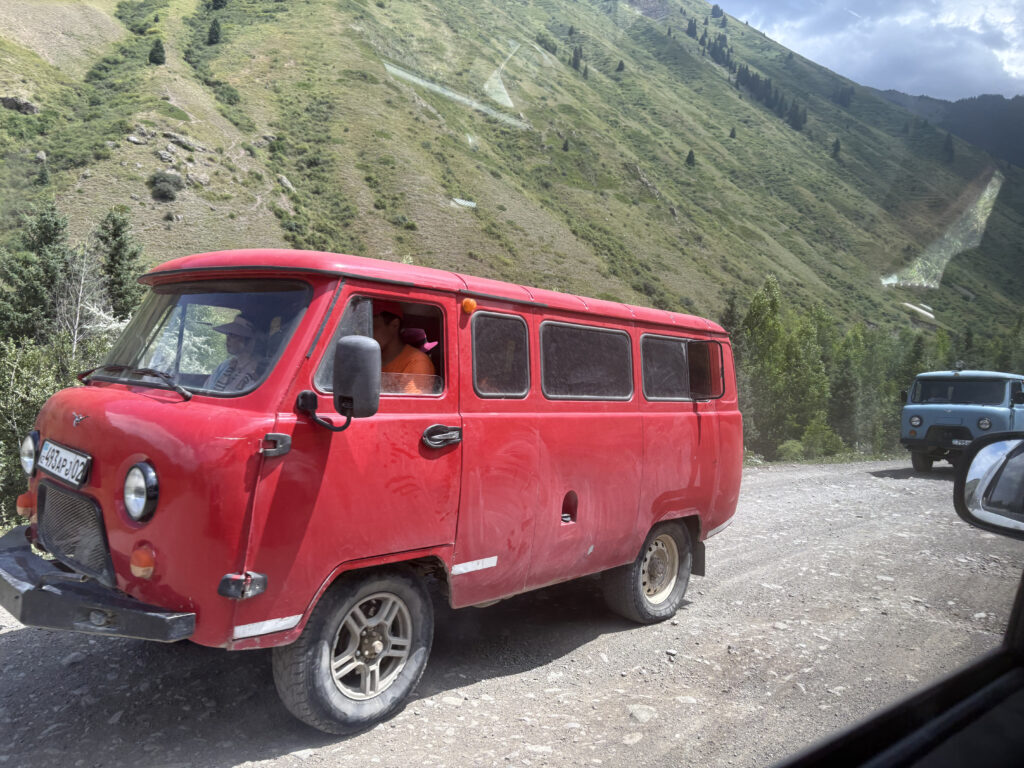 アルマティからの道は整備されつつありますが、依然としてガタガタと激しく揺れる箇所が多いです。