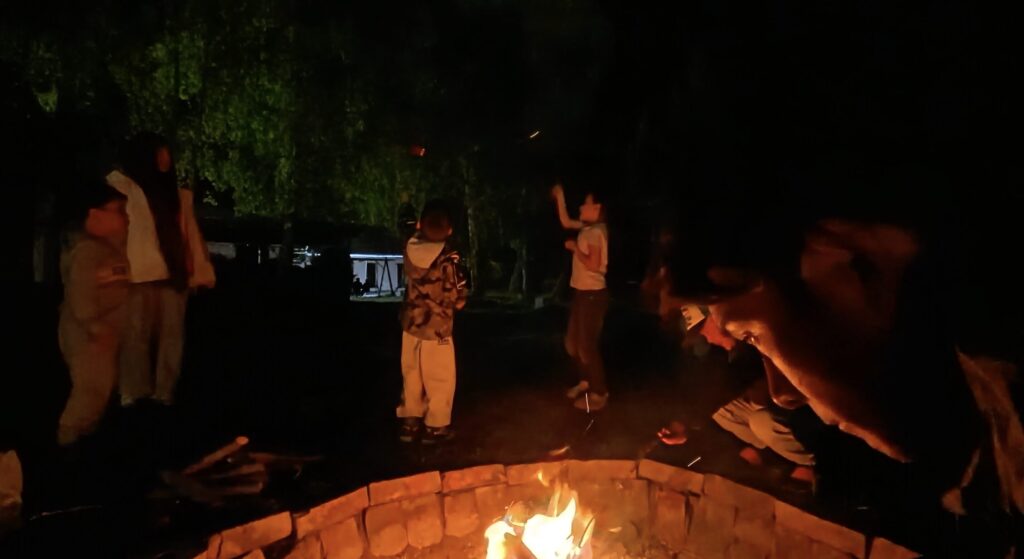 夜はアシュゲストハウスで、温かい夕食とキャンプファイヤーを楽しみましょう。