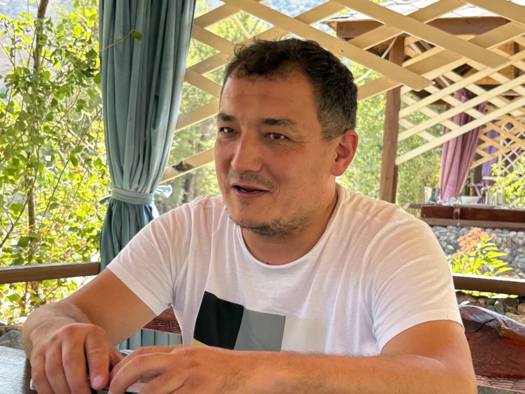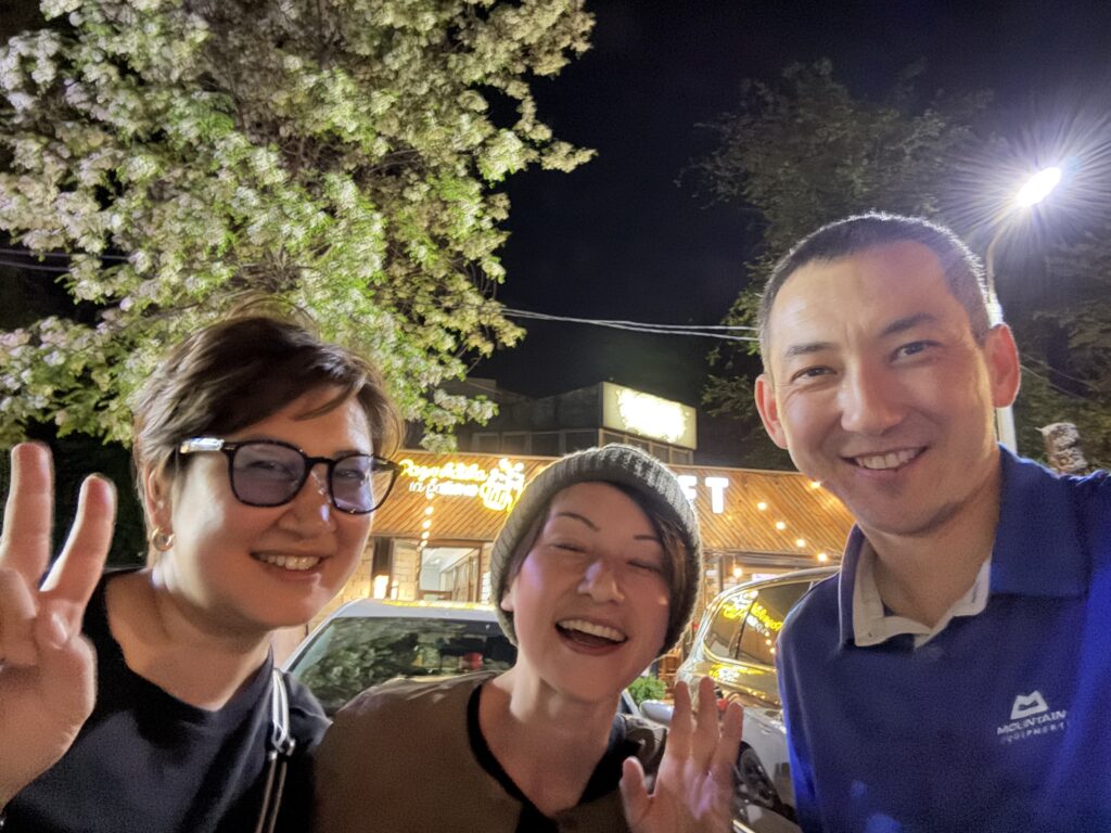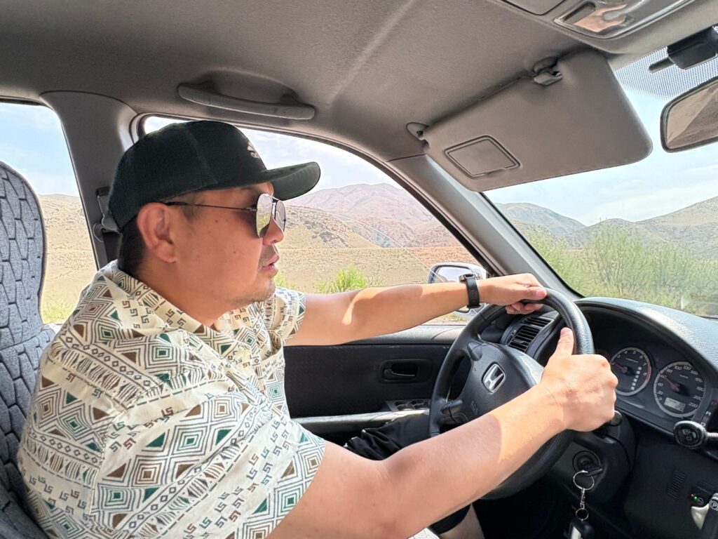 ヌリヤとは小学校からの友人で信頼関係はバツグン。ソンクル湖までの未舗装路から、ビシュケク市内の渋滞まで、どんな状況でも落ち着いて対応し、快適にサポートしてくれます。