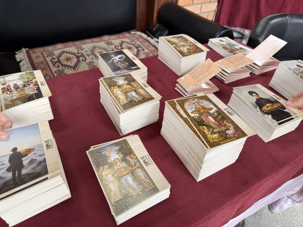 ラマダンの時期に来たときは、ラマダン関連の冊子やユーモラスなポストカードがあり、自由に持ち帰れました。有名画の一部をプロフにした感じで面白い。