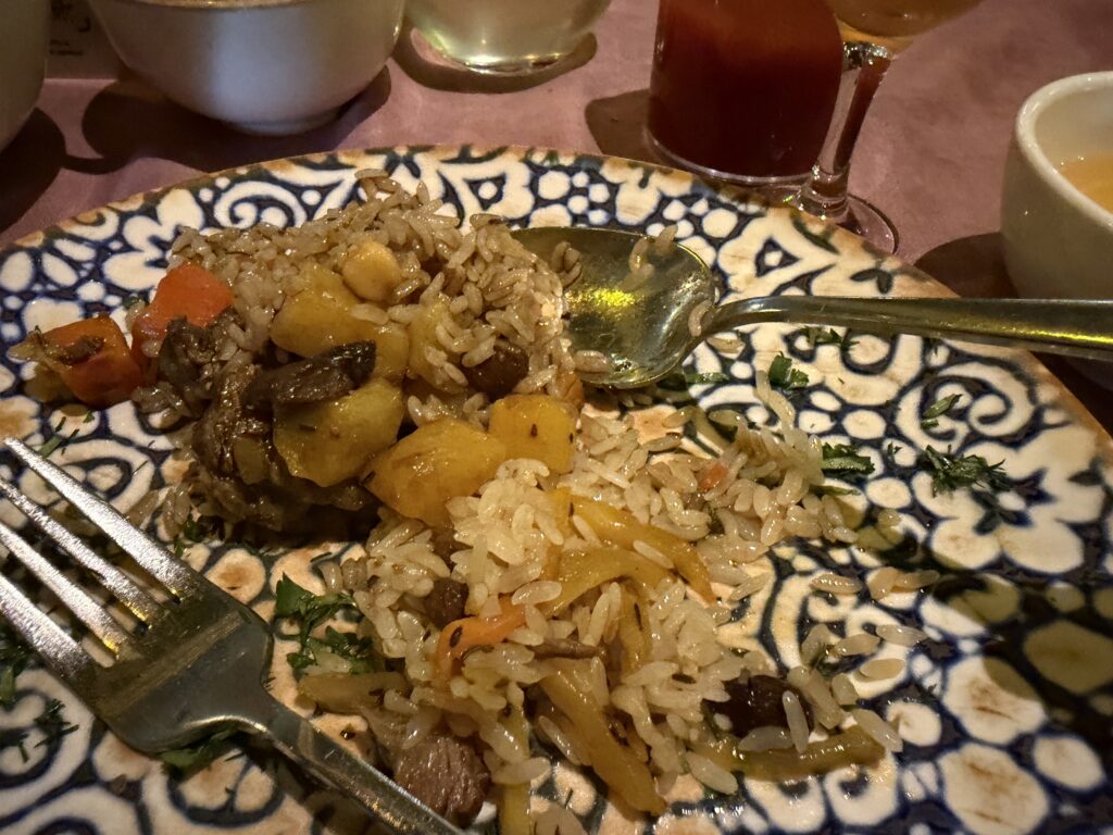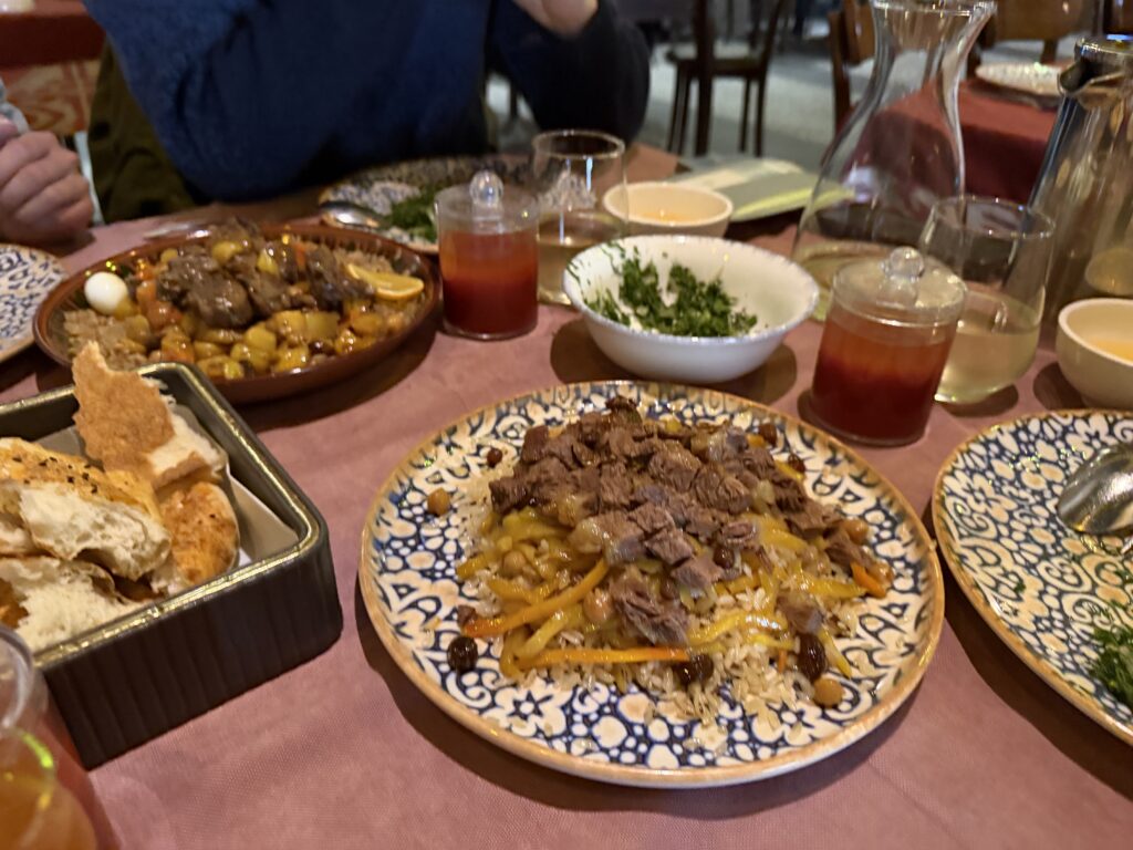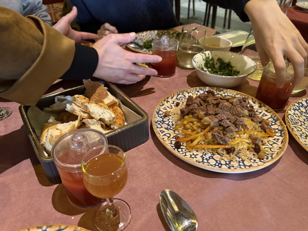 見学でお腹がすいたところで、いよいよ実食。どれを頼んでもハズレなし。初めてのウズベキスタングルメにこれ以上ない場所でした。